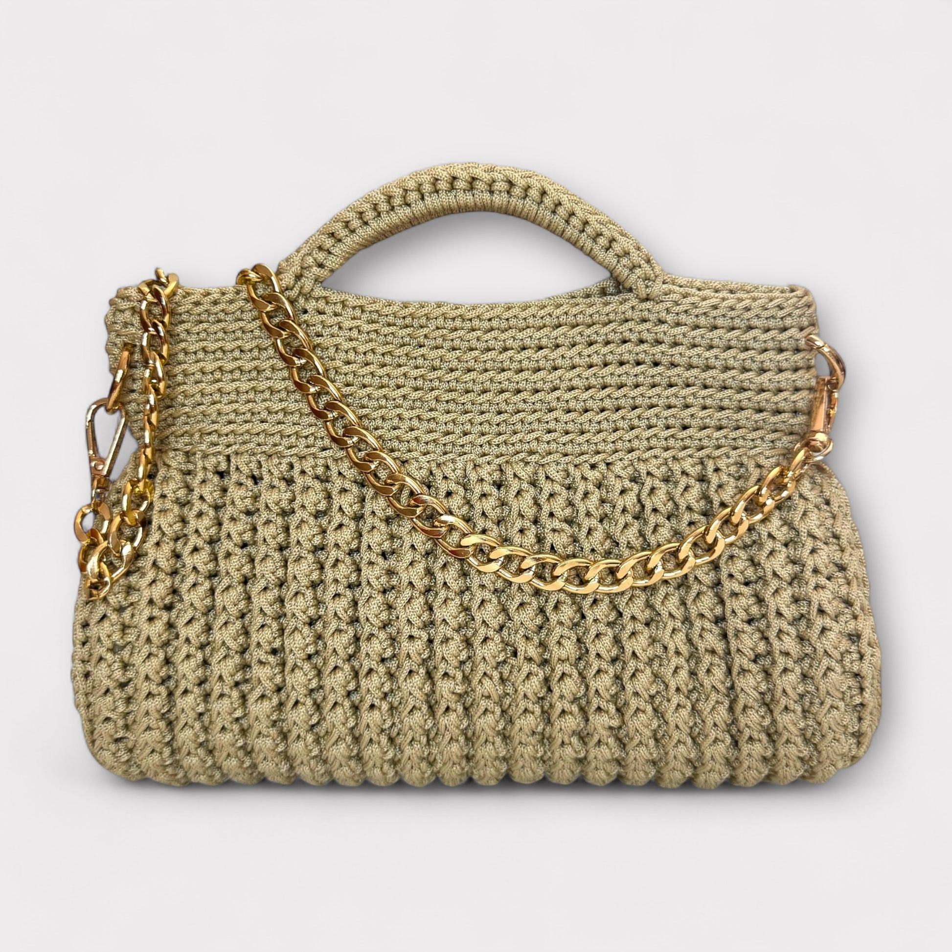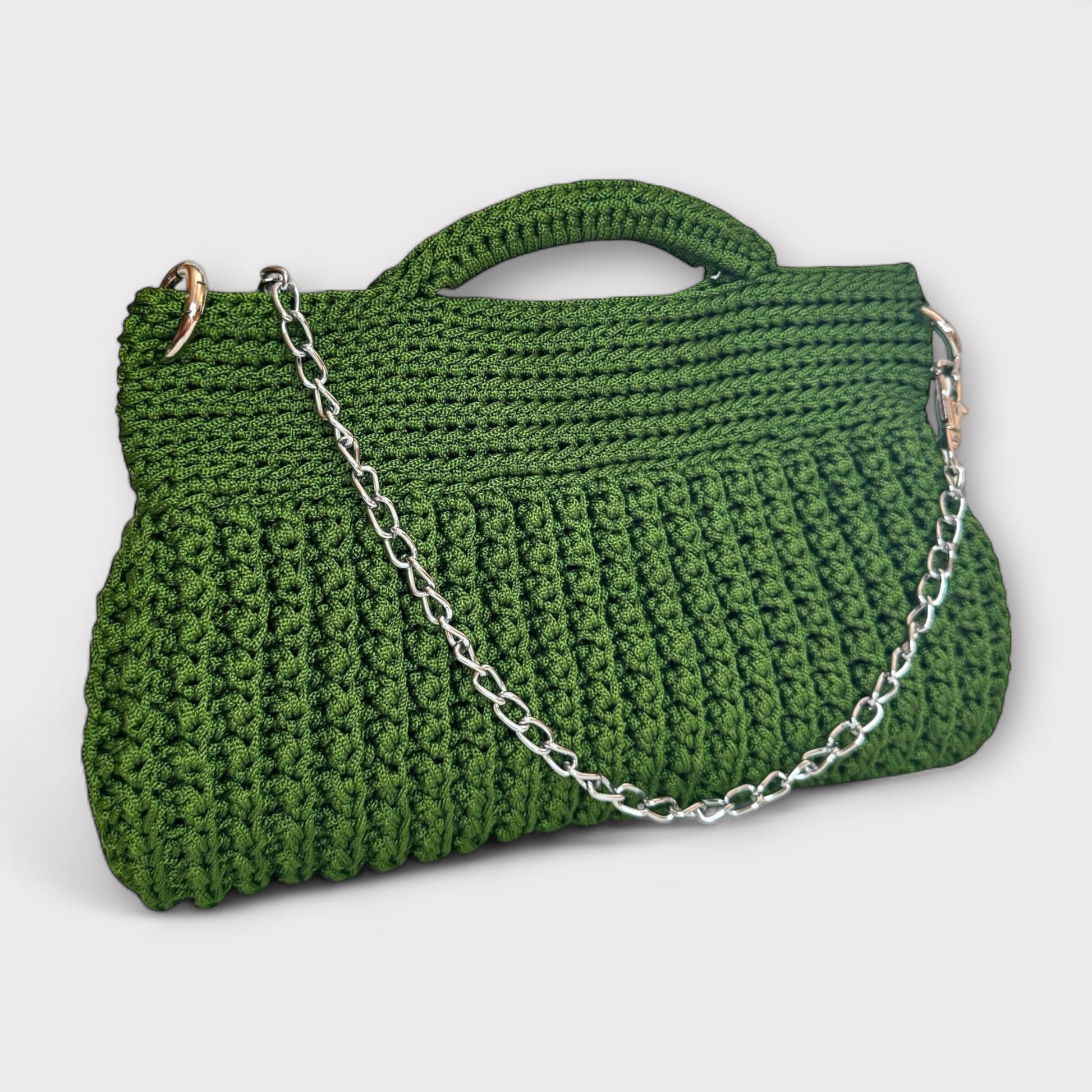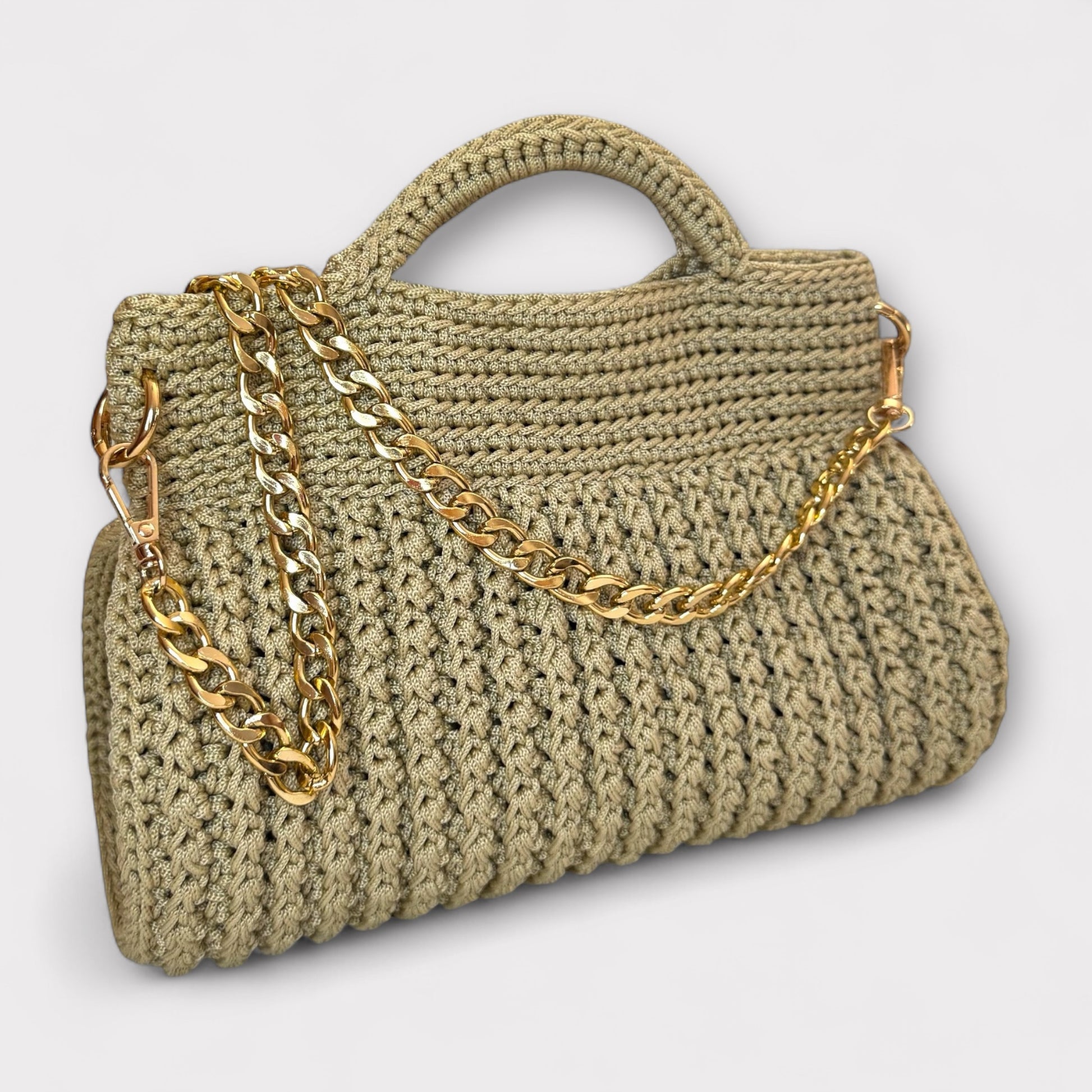 Amanda è una borsa artigianale realizzata interamente a mano con l'uncinetto, che unisce eleganza e modernità. La sua struttura compatta e sofisticata è arricchita da una catena che aggiunge un tocco luminoso e raffinato, rendendola perfetta sia per il giorno che per la sera. Grazie al design versatile e alle varianti disponibili, Amanda è l’accessorio ideale per chi cerca unicità, stile e qualità in un’unica borsa.