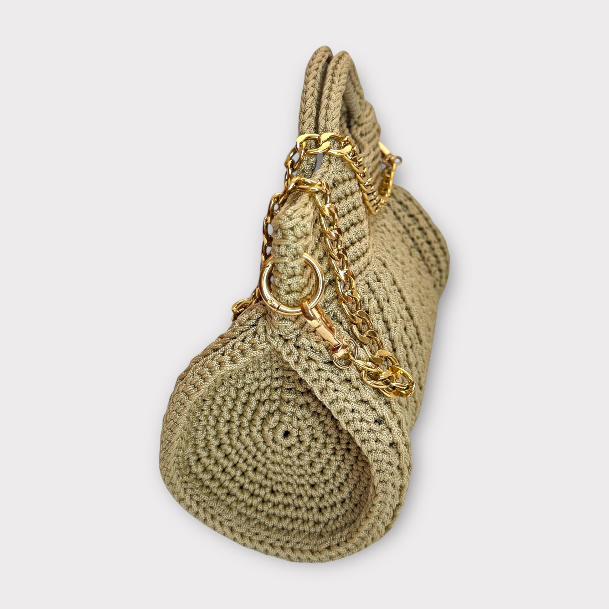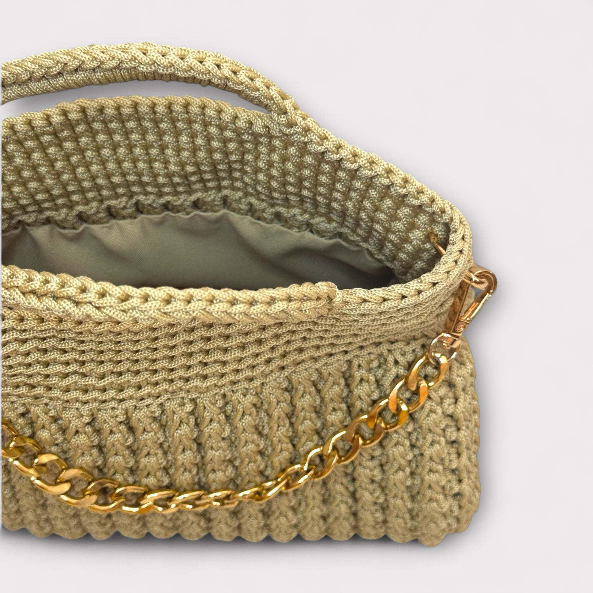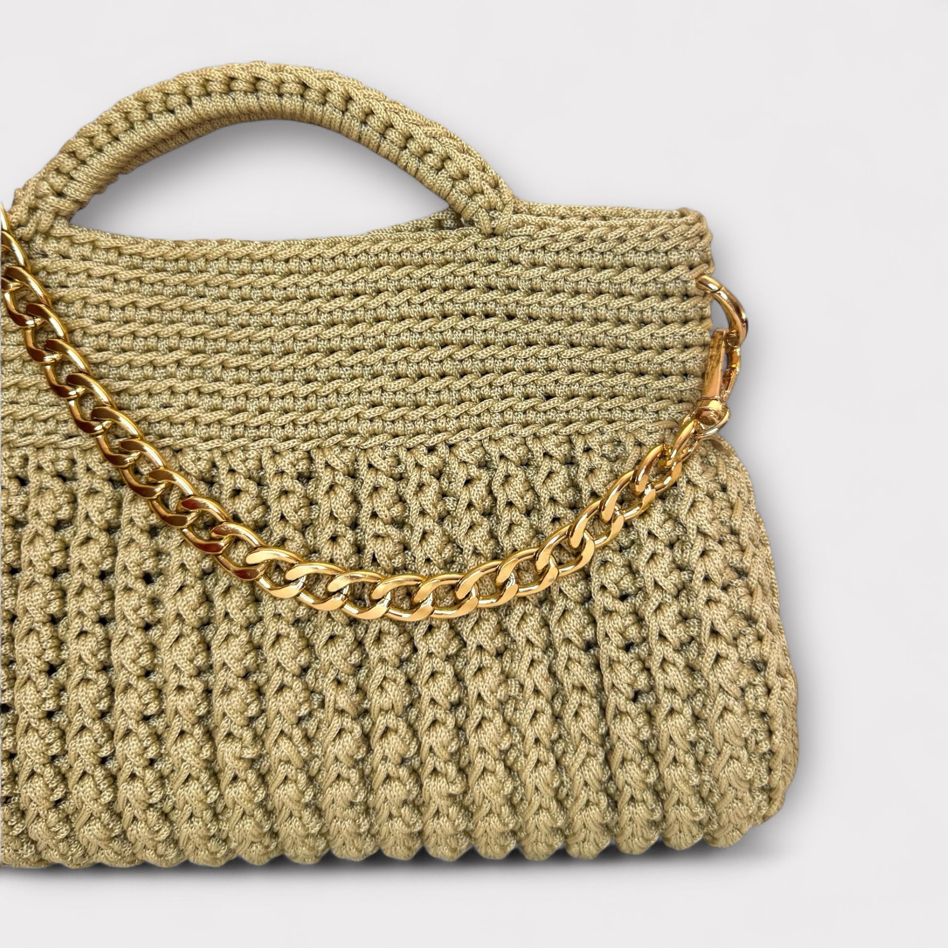 Amanda è una borsa artigianale realizzata interamente a mano con l'uncinetto, che unisce eleganza e modernità. La sua struttura compatta e sofisticata è arricchita da una catena che aggiunge un tocco luminoso e raffinato, rendendola perfetta sia per il giorno che per la sera. Grazie al design versatile e alle varianti disponibili, Amanda è l’accessorio ideale per chi cerca unicità, stile e qualità in un’unica borsa.