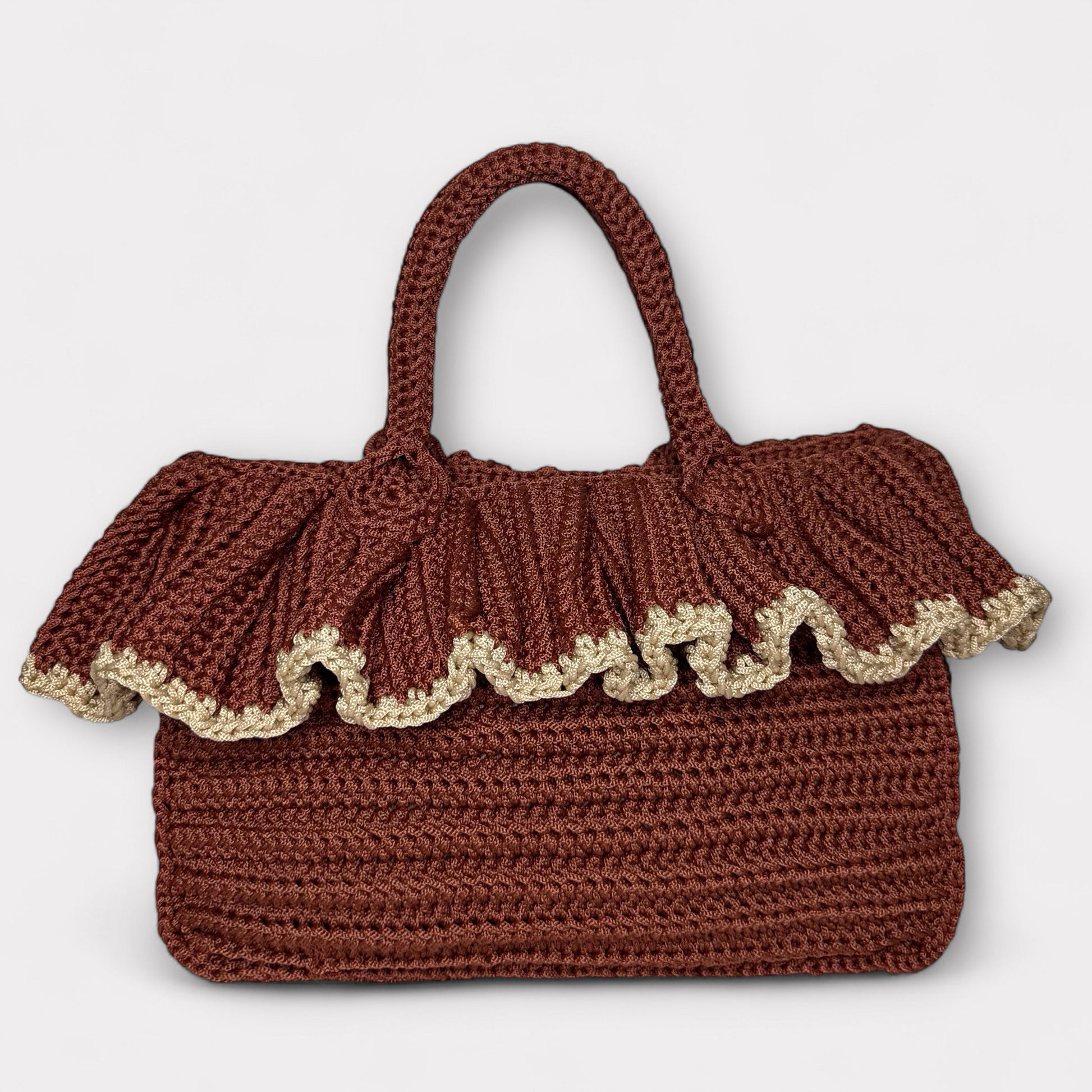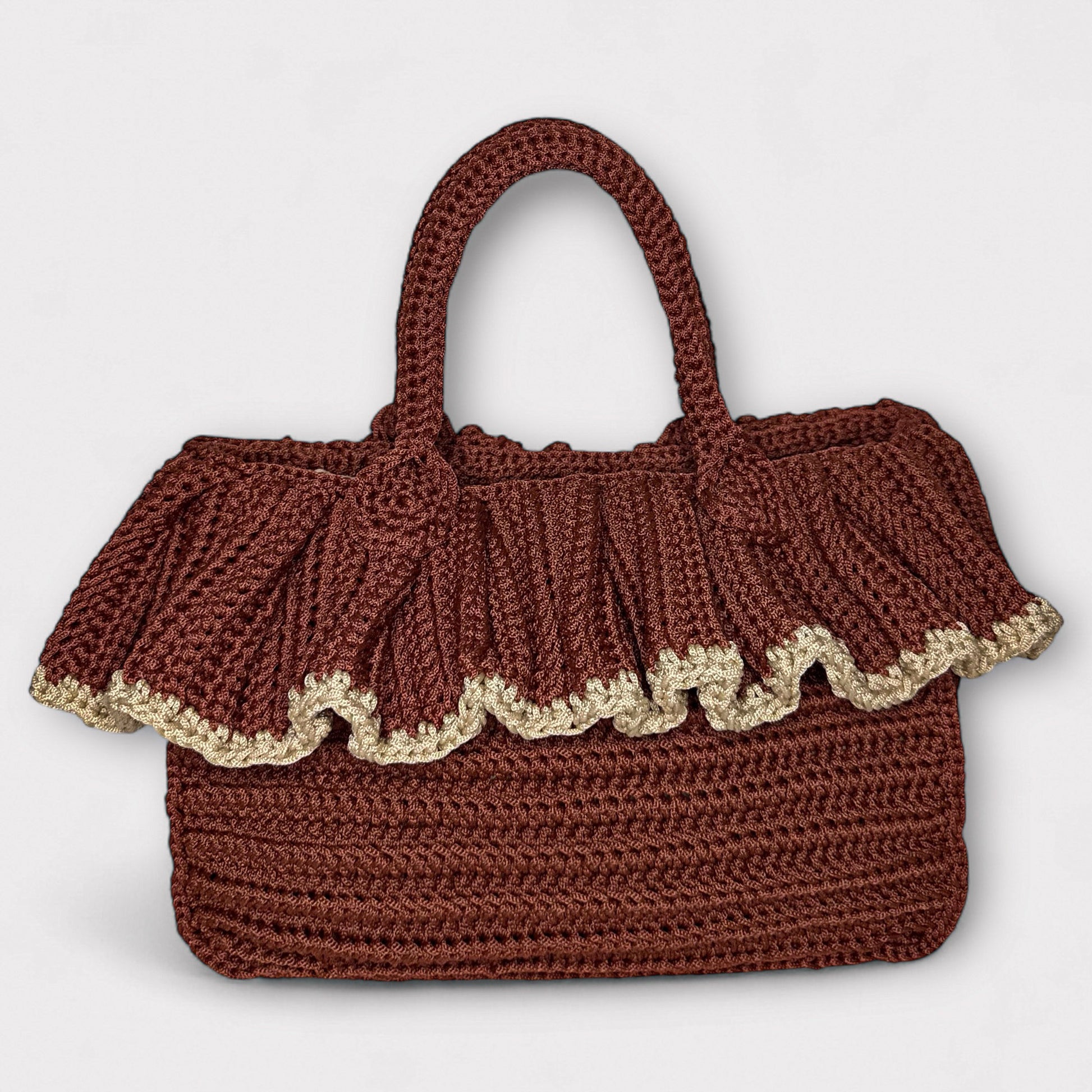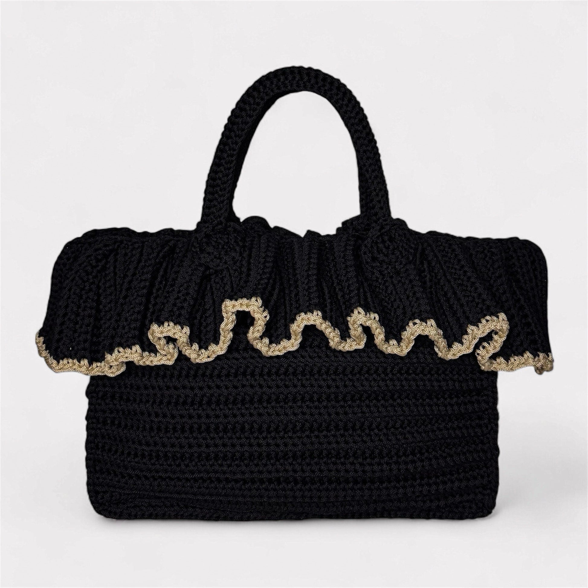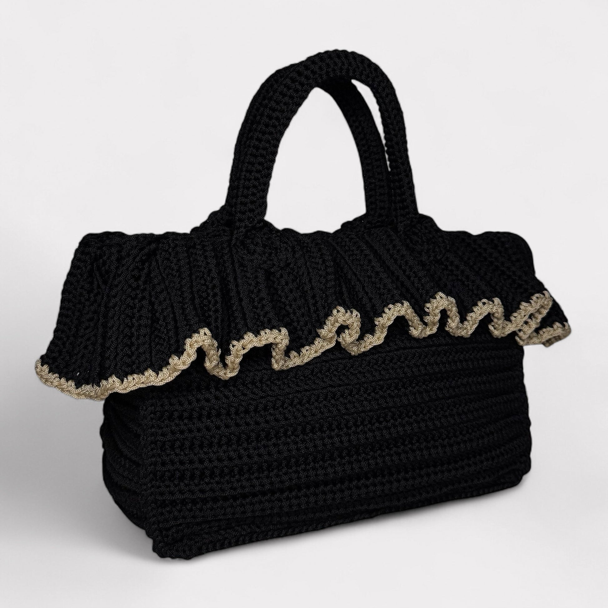 La borsa Inès unisce artigianalità e raffinatezza con la sua lavorazione all’uncinetto e l’elegante volant che ne esalta lo stile unico. Un accessorio intramontabile, pensato per accompagnare con classe ogni occasione.